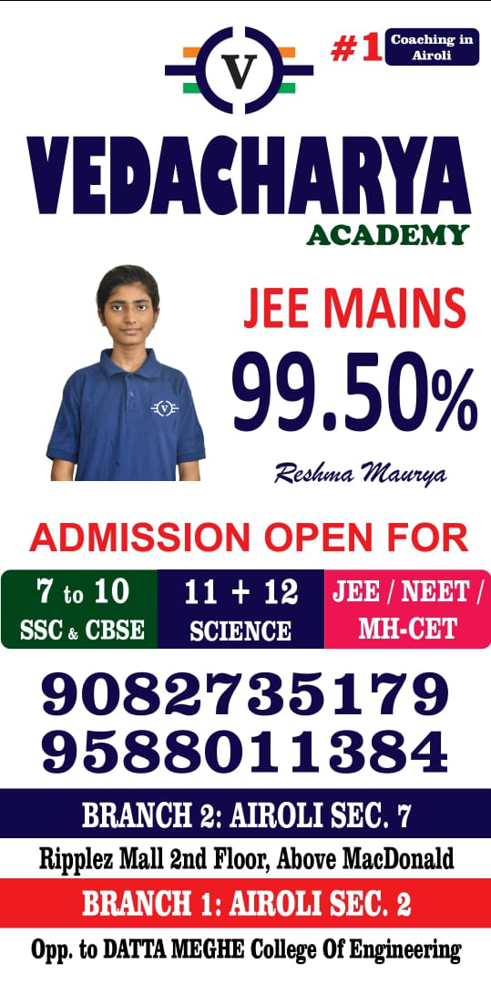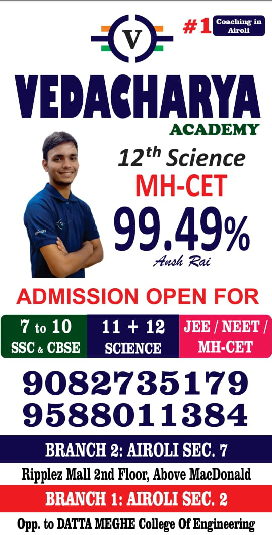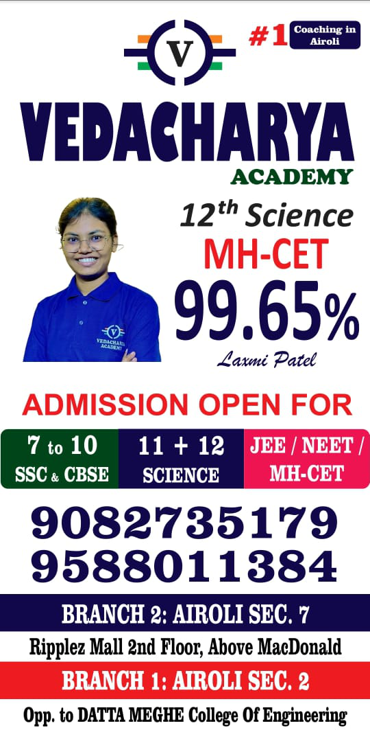 Vedacharya Academy in Navi Mumbai offers top-quality coaching for 8th, 9th, 10th (SSC/CBSE), 11th & 12th (Science/Commerce), JEE (IIT), and NEET (Medical) exams. Expert faculty, proven results, and focused learning.